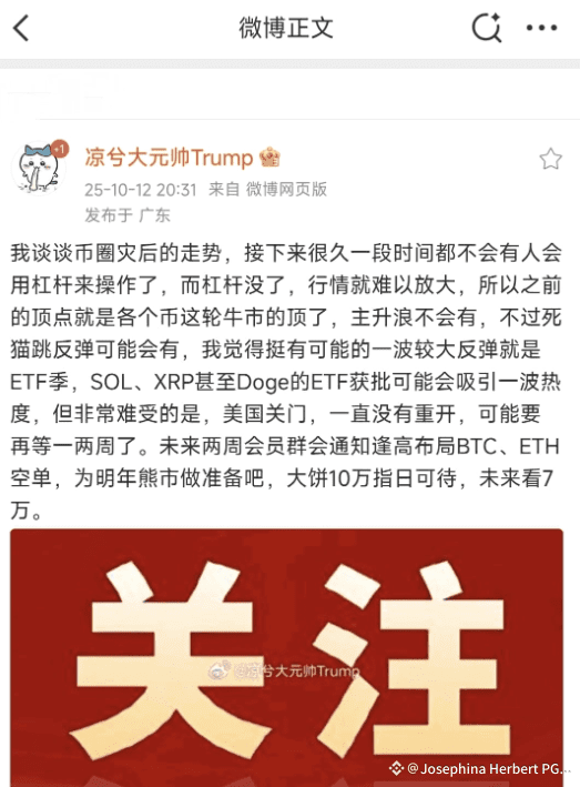 最近凉兮彻底看空了后市,他判断明年很可能就是熊市,感觉大饼比特币最终会回到 7万。他分析得很透彻:现在杠杆基本凉了,行情没杠杆,放大的空间就没了,所以我们之前看到的顶点,差不多就是这轮牛市的极限了。主升浪?别想了,未来能出现的只有 死猫跳反弹。